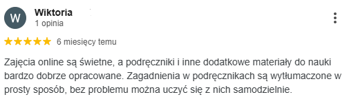 W cenie dostajesz e-booka z teorią i zadaniami. Wykorzystasz go między spotkaniami lub po całym kursie.